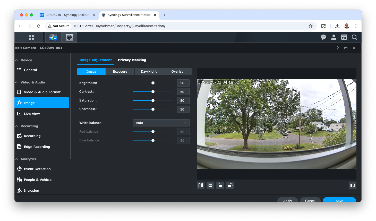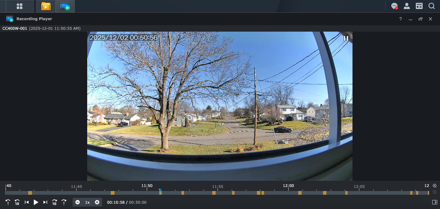 The image quality of the Synology CC400W Camera was excellent, even when looking through a window.